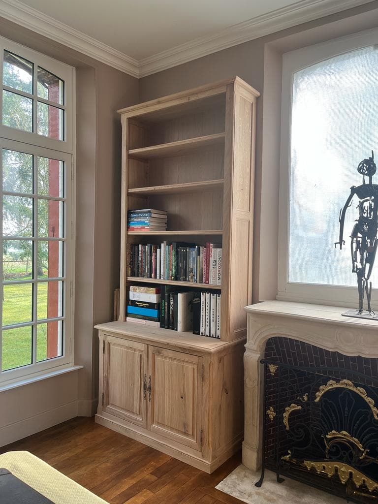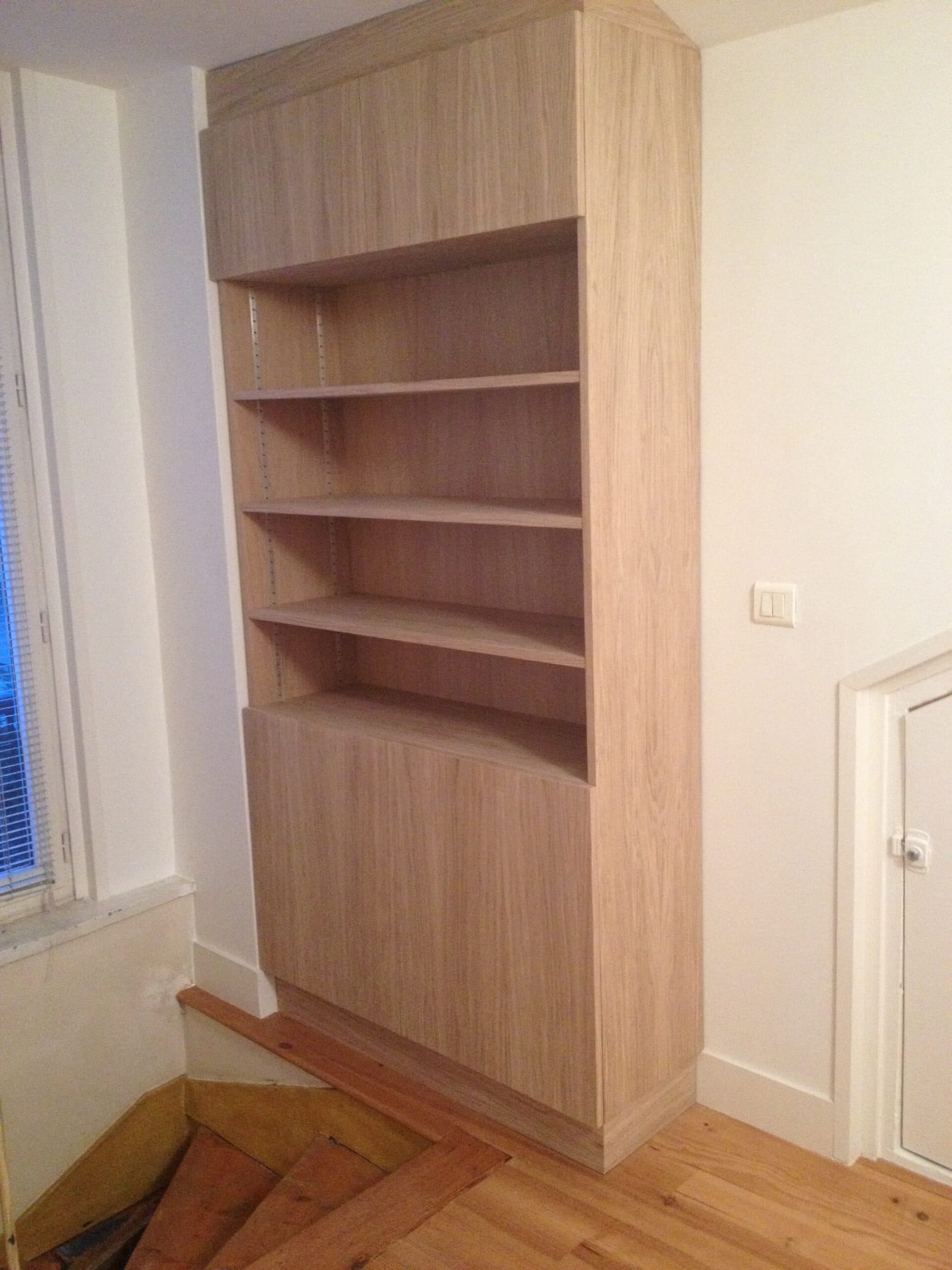 Bibliothèque en bois de chêne sur-mesure vue de face