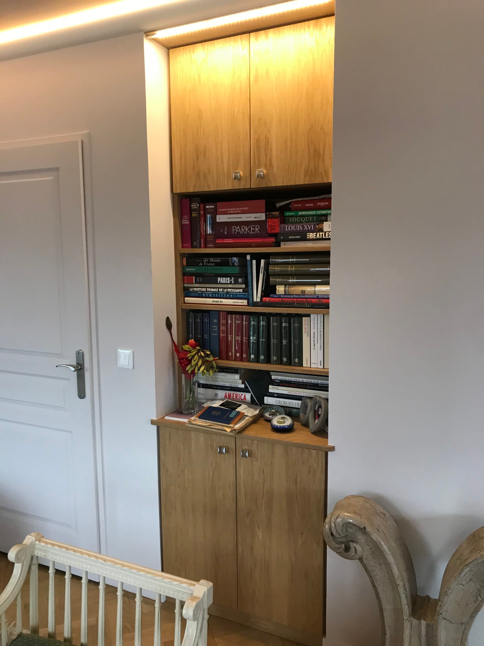 Bibliothèque en bois de chêne sur-mesure vue de côté